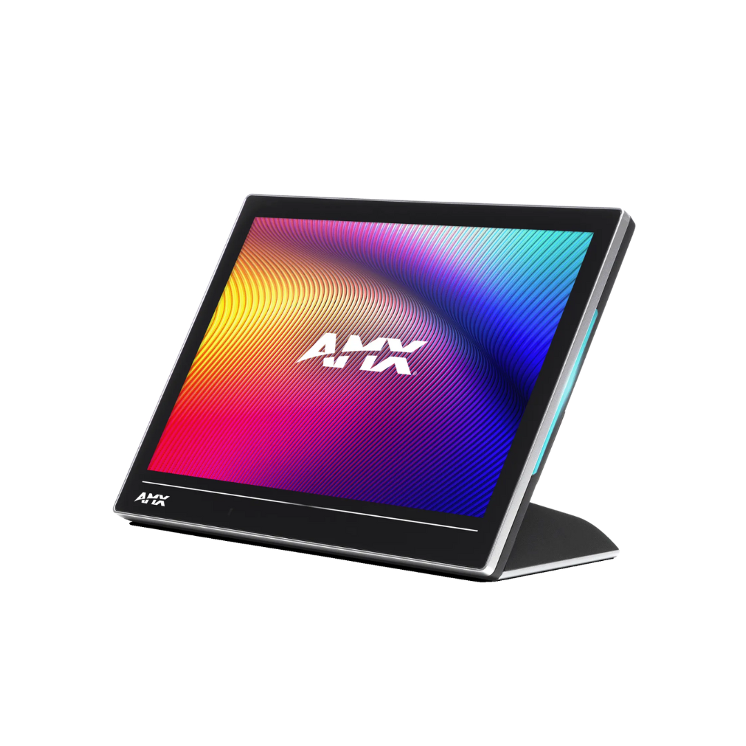 AMX VARIA-ACS-100F is a fixed tabletop stand for VARIA-100 and VARIA-100N professional-grade touch panels for placement on meeting space and boardroom tables or other flat surfaces.